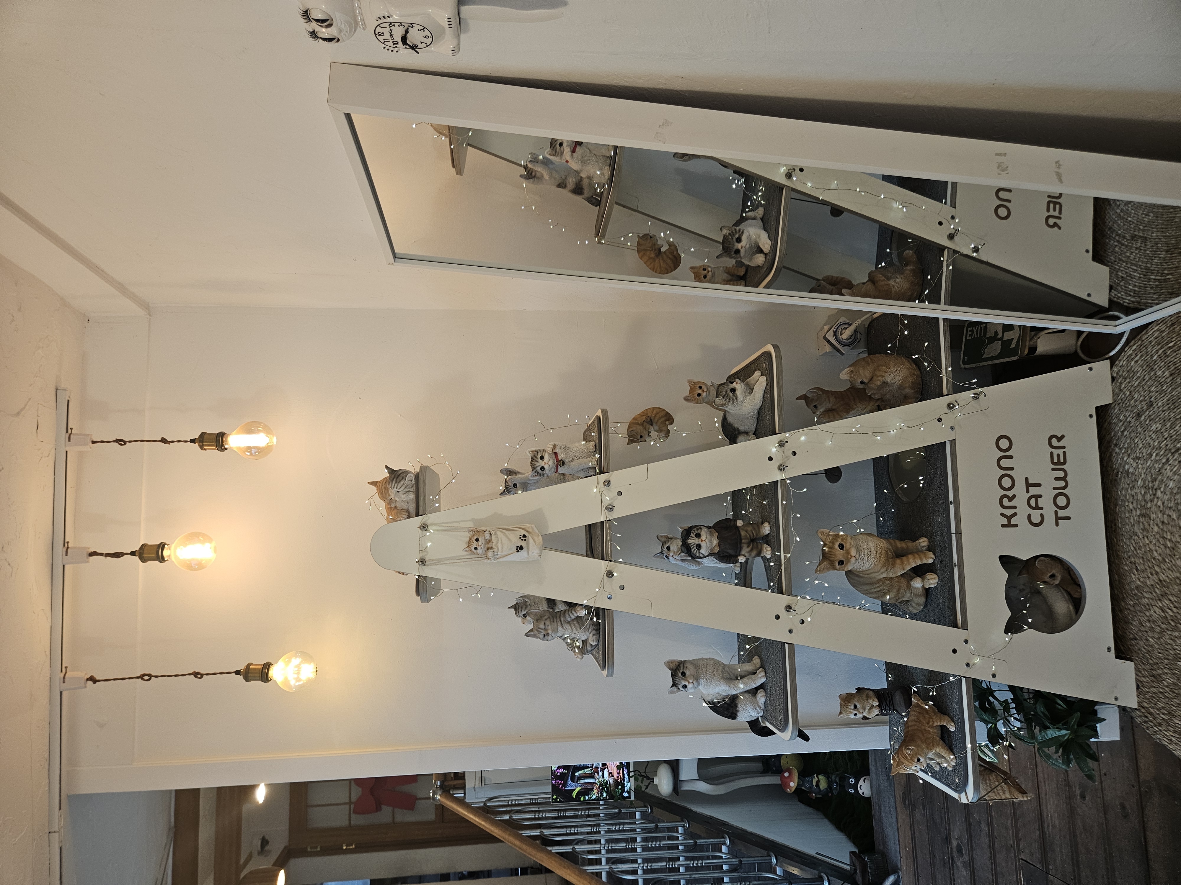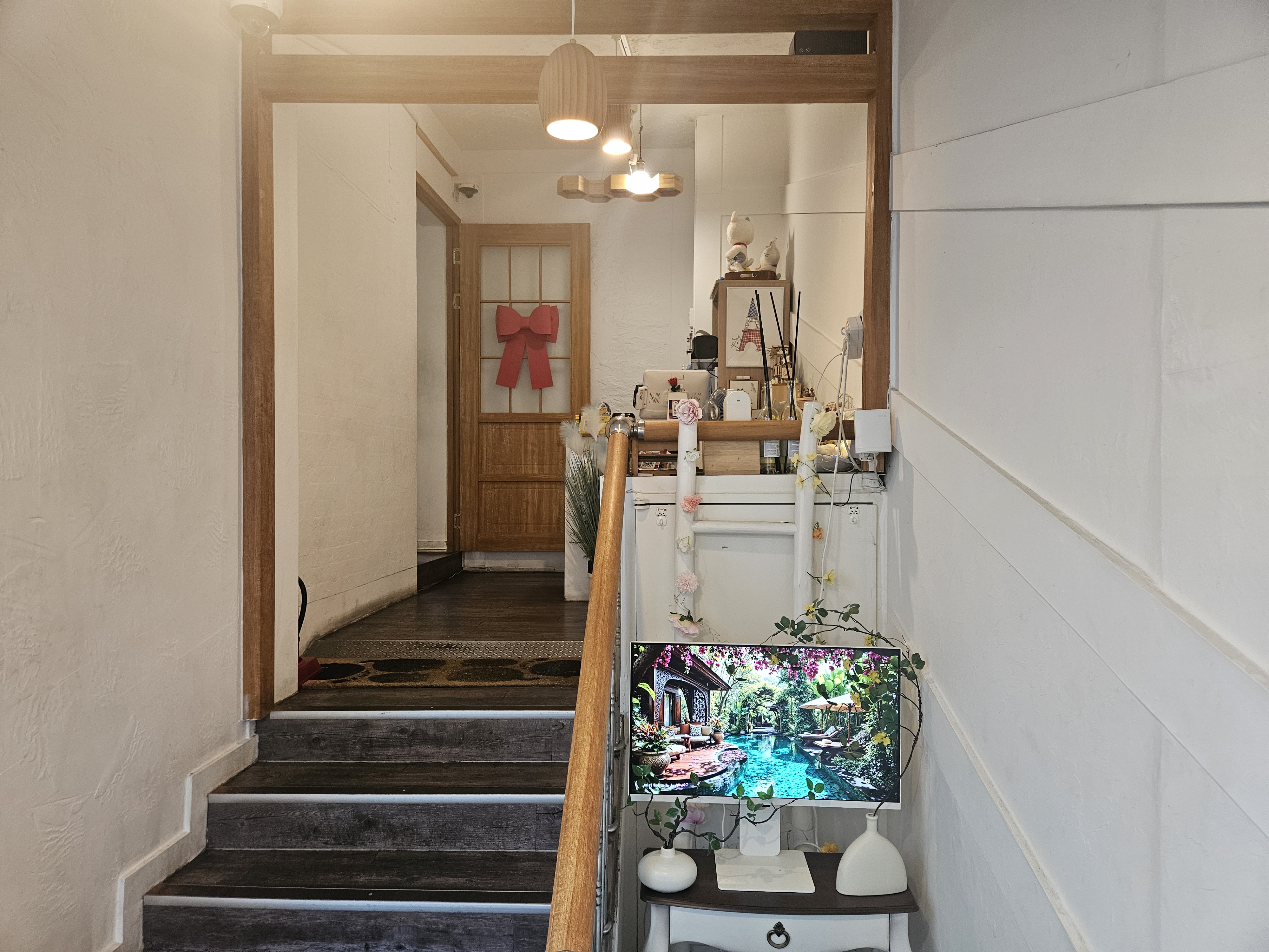 육미정담은 겉에서부터 느껴지는 고즈넉한 분위기가 인상적인 곳이었어요. 한옥처럼 꾸며진 외관은 편안하고 아늑한 느낌을 주었답니다. 안으로 들어서면 다양한 소품들과 아기자기한 인테리어가 눈길을 사로잡습니다. 특히, 곳곳에 놓인 고양이 인형과 소품들이 정말 귀여웠어요. 마치 작은 갤러리나 소품 가게에 온 듯한 기분이 들었답니다.