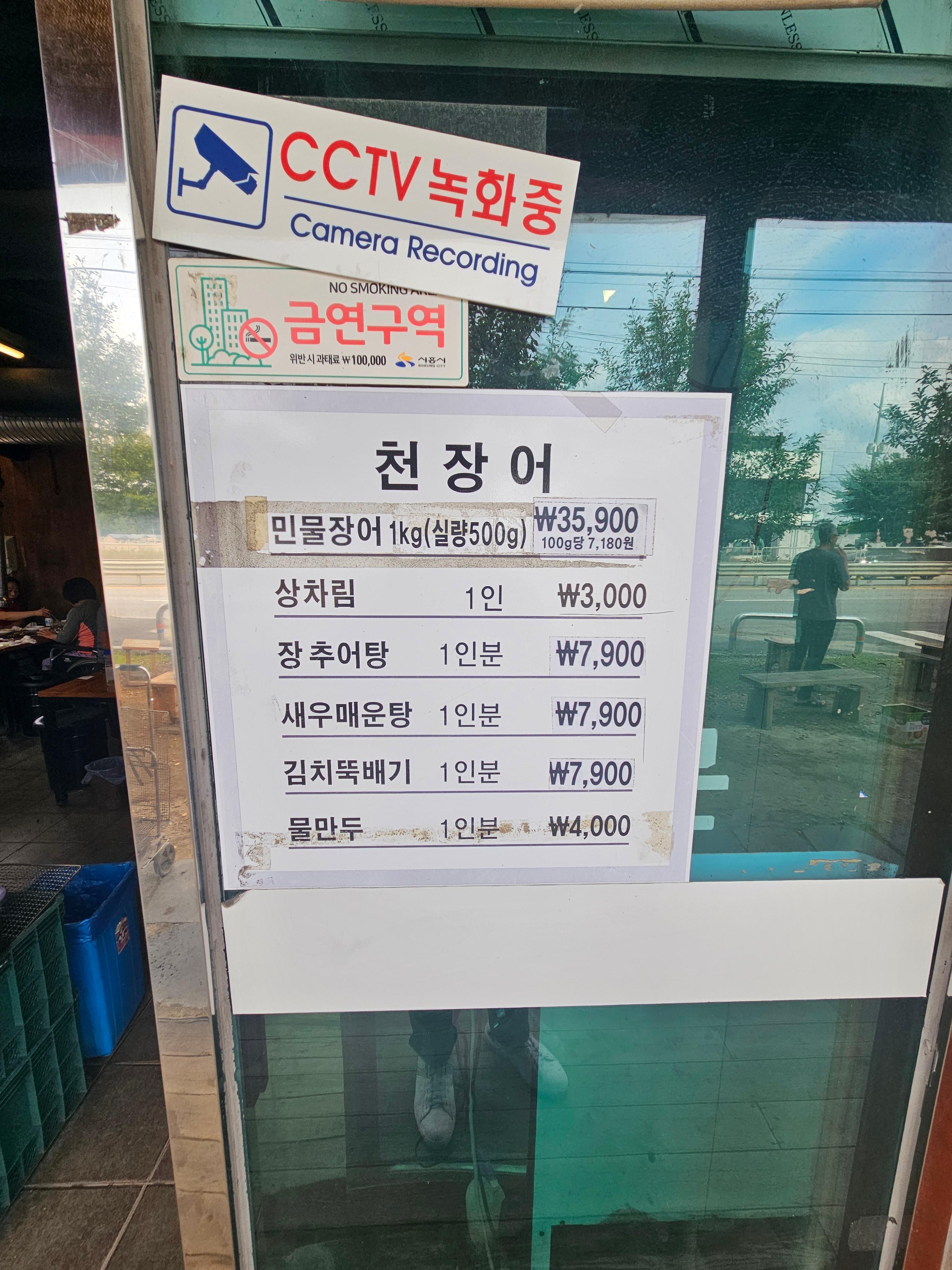 - 풍천민물장어 (국내산) 1kg (실중량 500g): ₩29,900 / ₩35,900 (가격표가 두 개였는데, 뒤에는 상차림비 포함입니다.)