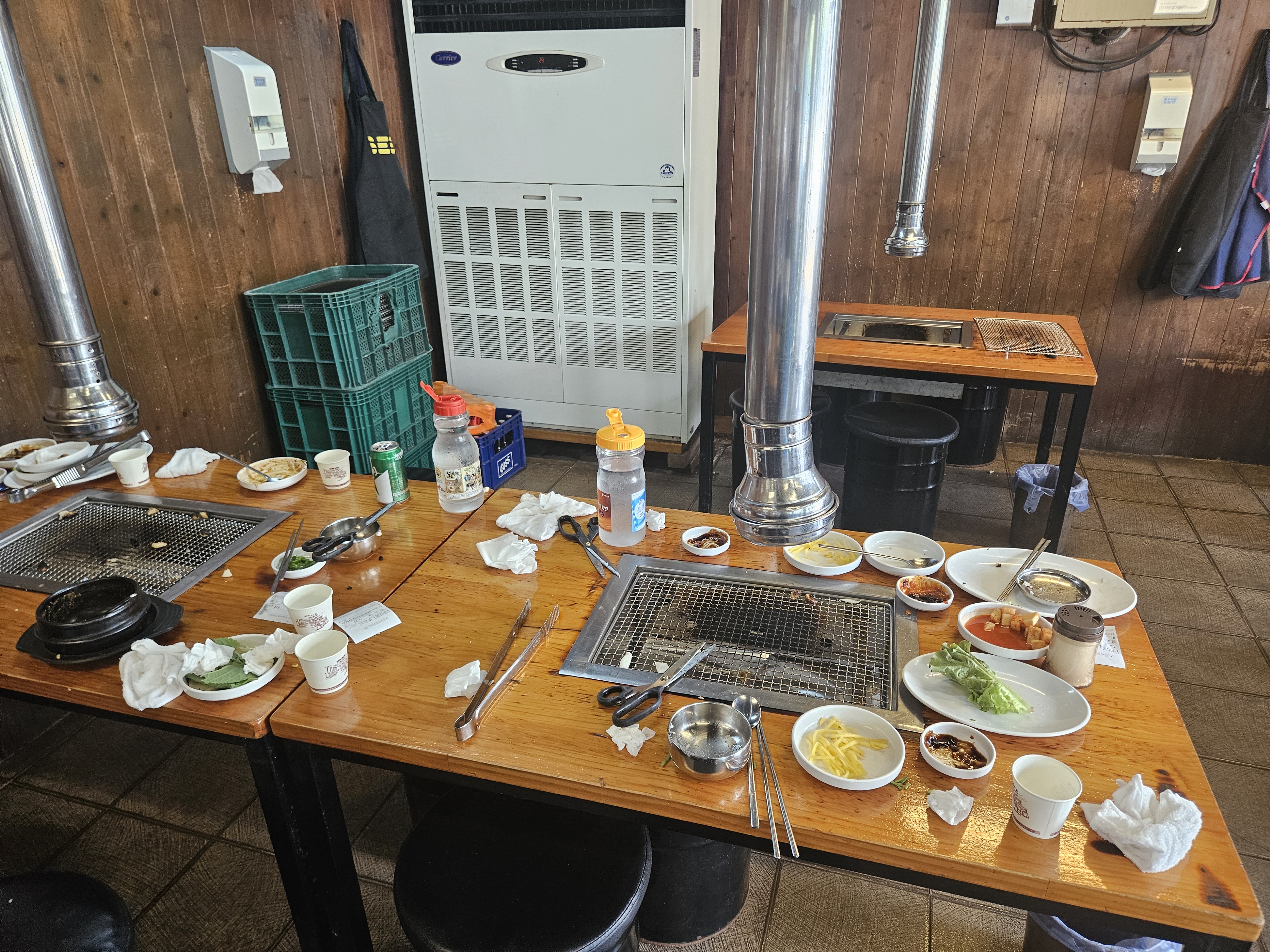 시흥 외곽에 위치해 드라이브 겸 방문하기 좋았던 천장어 본점. (사진에는 건물 외관도 담았는데, 널찍한 주차장이 있어 편했어요.) 식당 내부는 테이블마다 숯불 화로와 연기 흡입기가 설치된 전형적인 장어구이 전문점의 모습이었고, 꽤 넓어서 가족 외식이나 단체 모임에도 좋아 보였어요. 사람이 많아서 그런지 테이블이 좀 어수선했지만, 맛있게 장어를 먹을 생각에 설렘 가득!