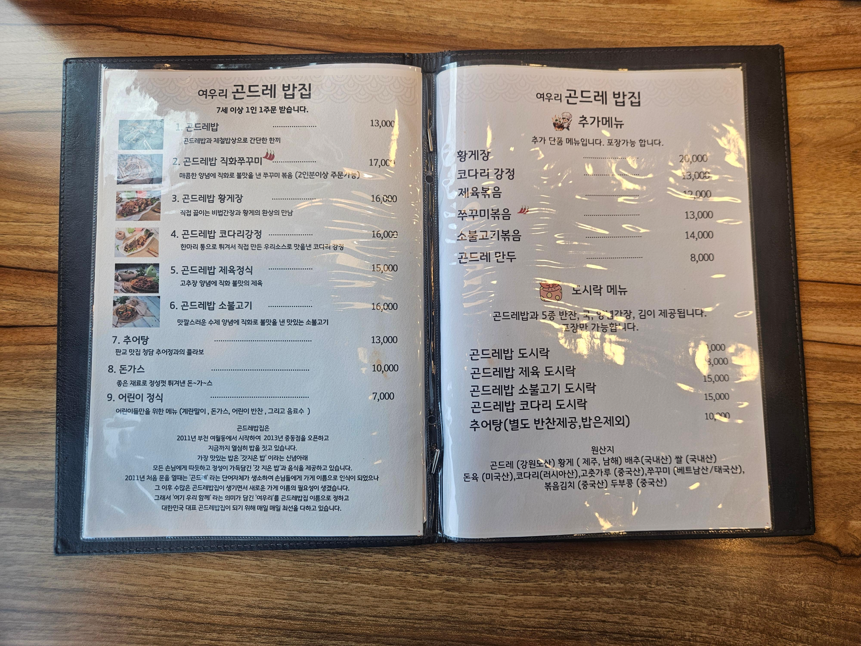 📋 곤드레밥집 중동점 메뉴 한눈에 보기 (가격 포함)