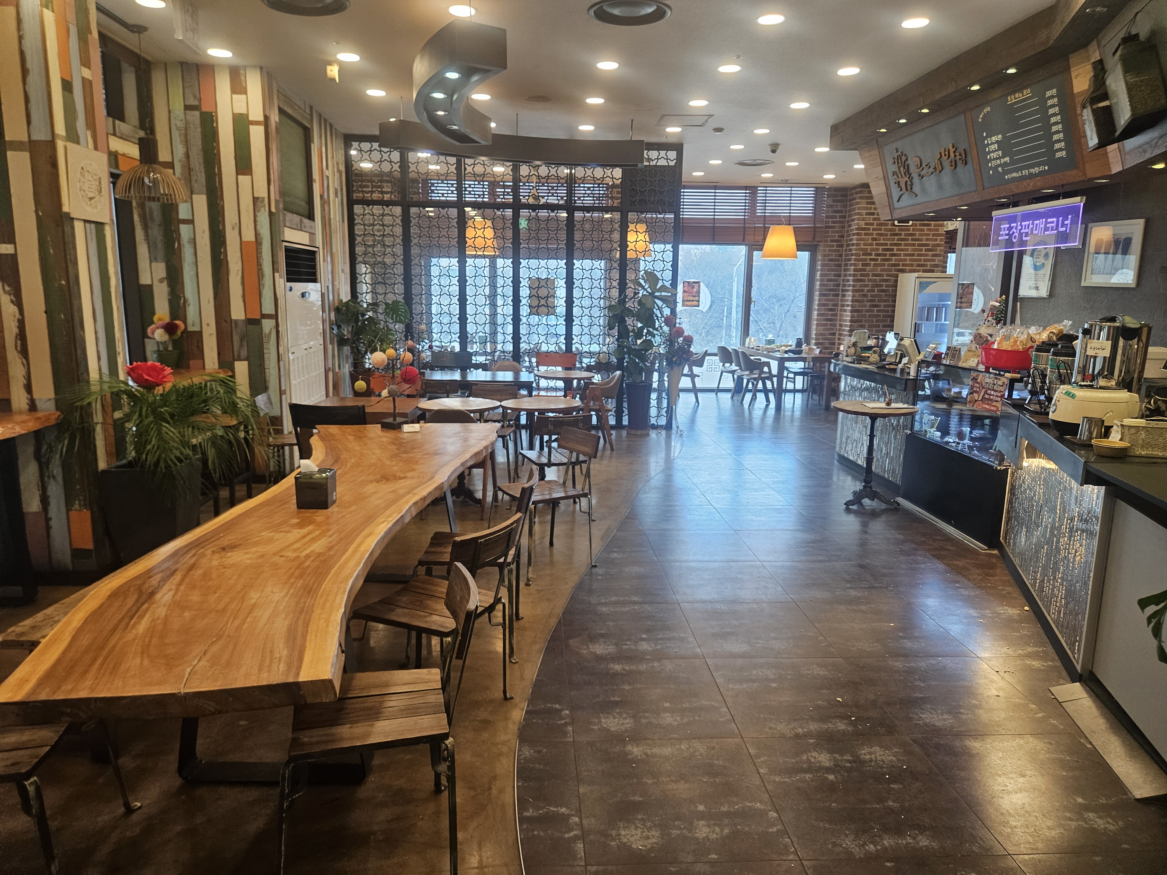 특히 눈에 띄는 건 길게 이어진 원목 테이블. 혼밥부터 가족 외식, 소규모 모임까지 다 커버 가능한 구조라서 활용도가 높아 보여요. 전체적으로 소음도 크지 않아 식사에 집중하기 좋은 공간이었습니다.